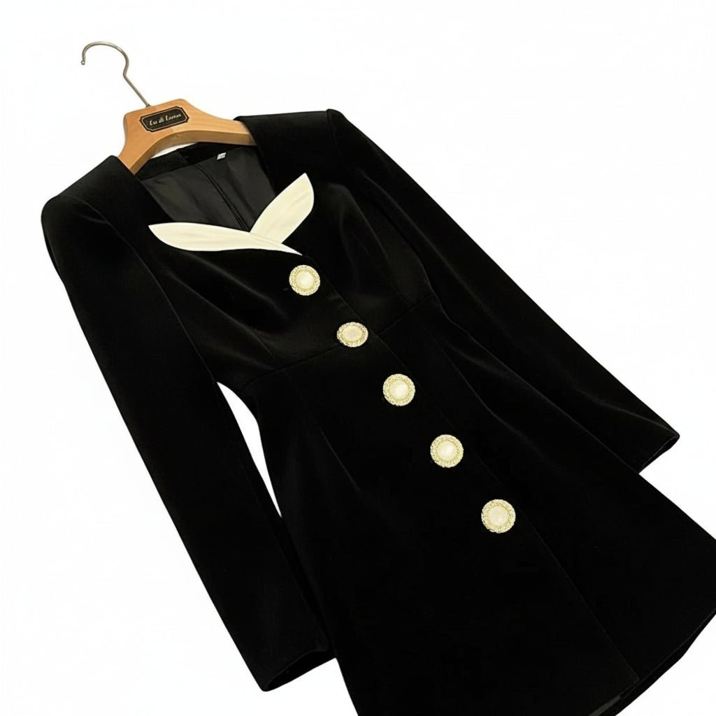 يتميز هذا الفستان القصير ذو اللون الرائج بياقة مربعة وأكمام طويلة وخصر مرتفع بتصميم إمبراطوري، مما يمنح قوامًا ممشوقًا وجذابًا. تضفي ألوان التطريز المتباينة وتفاصيل الأزرار الرقيقة لمسة من السحر والتوازن بين الأناقة والجاذبية. مصنوع من مزيج ناعم من القطن والبوليستر مع قليل من المرونة، مما يضمن الراحة والمظهر الأنيق الذي يُبرز جمال القوام، وهو مثالي لمناسبات الخريف والشتاء.