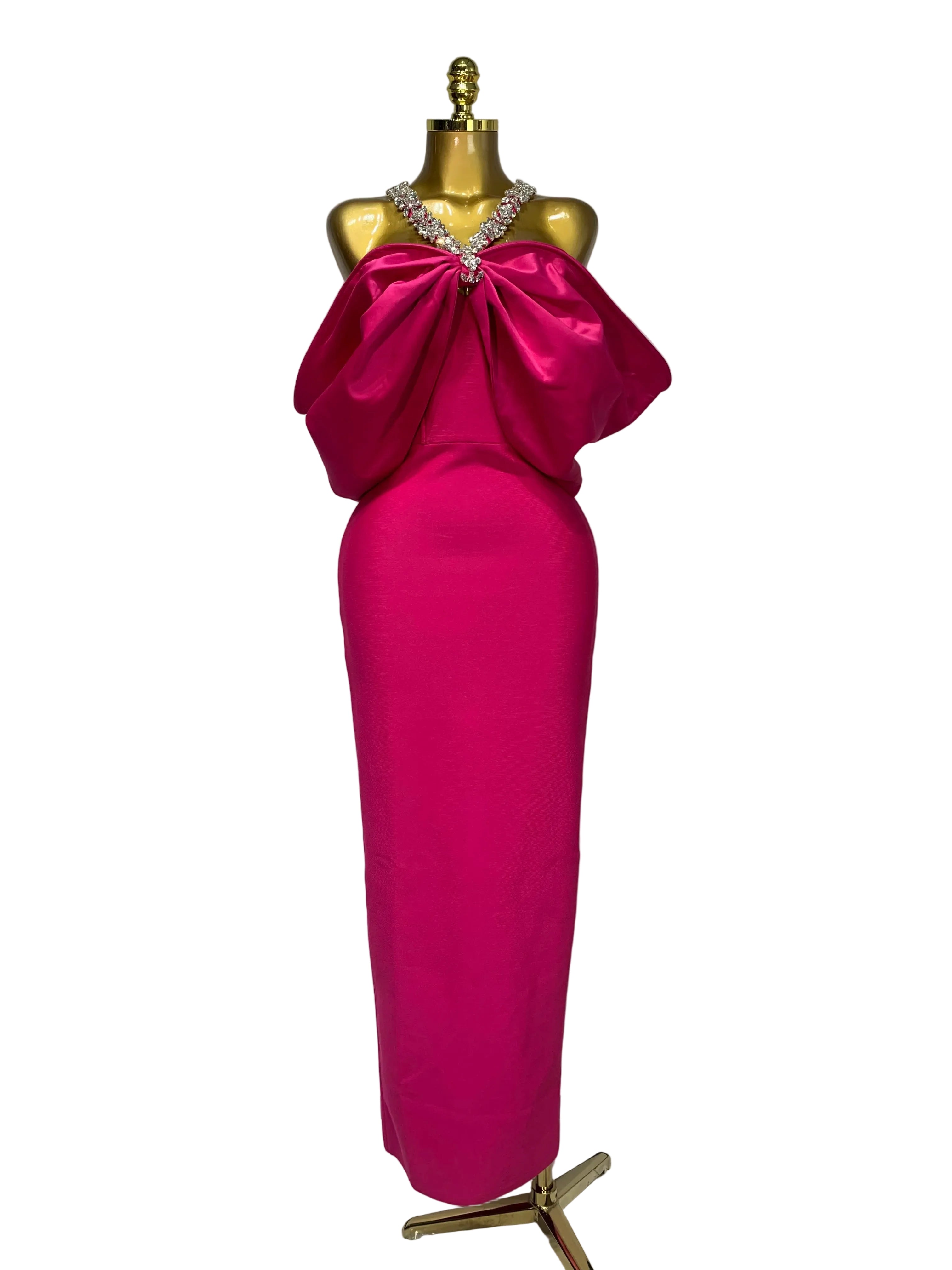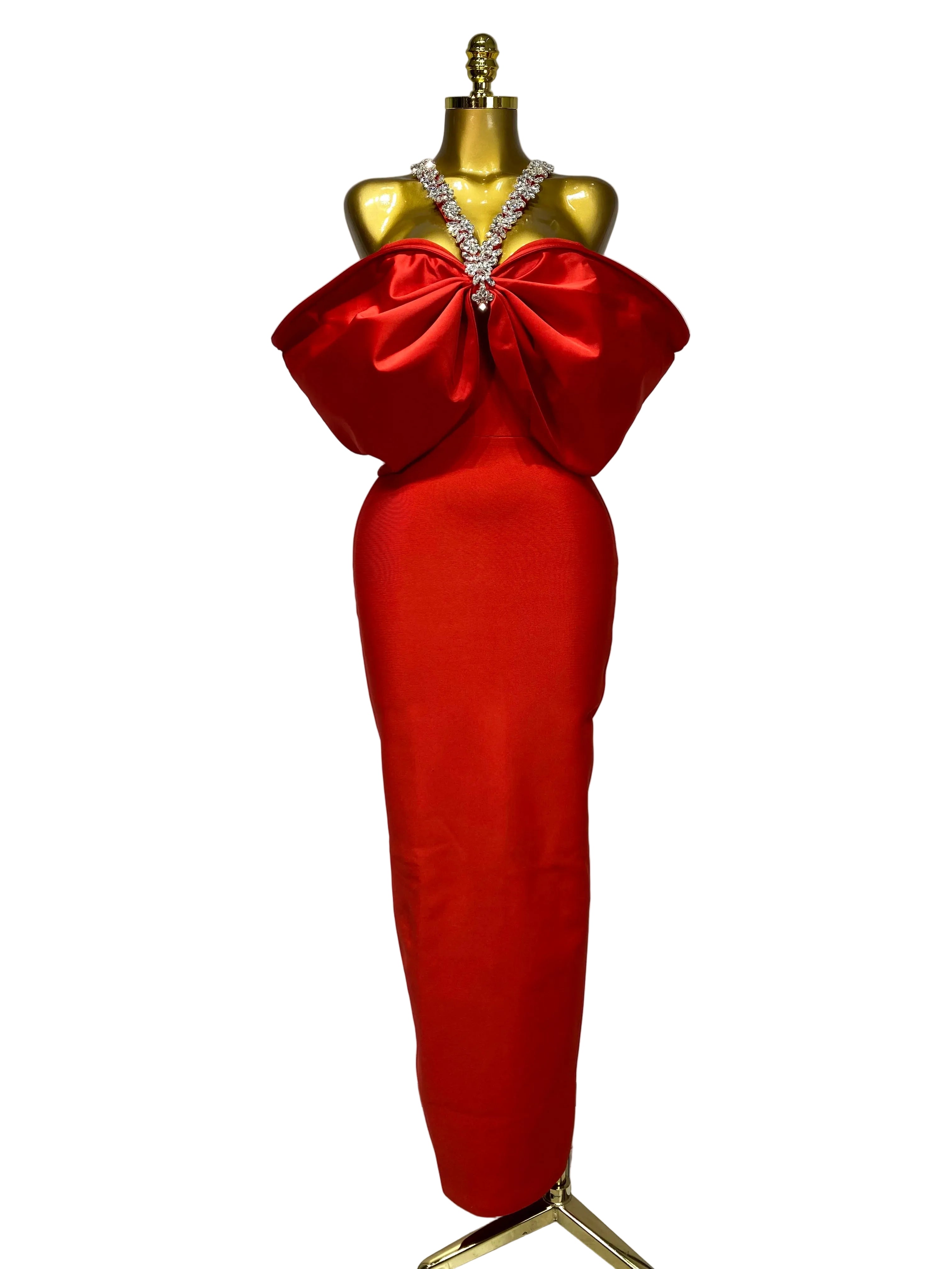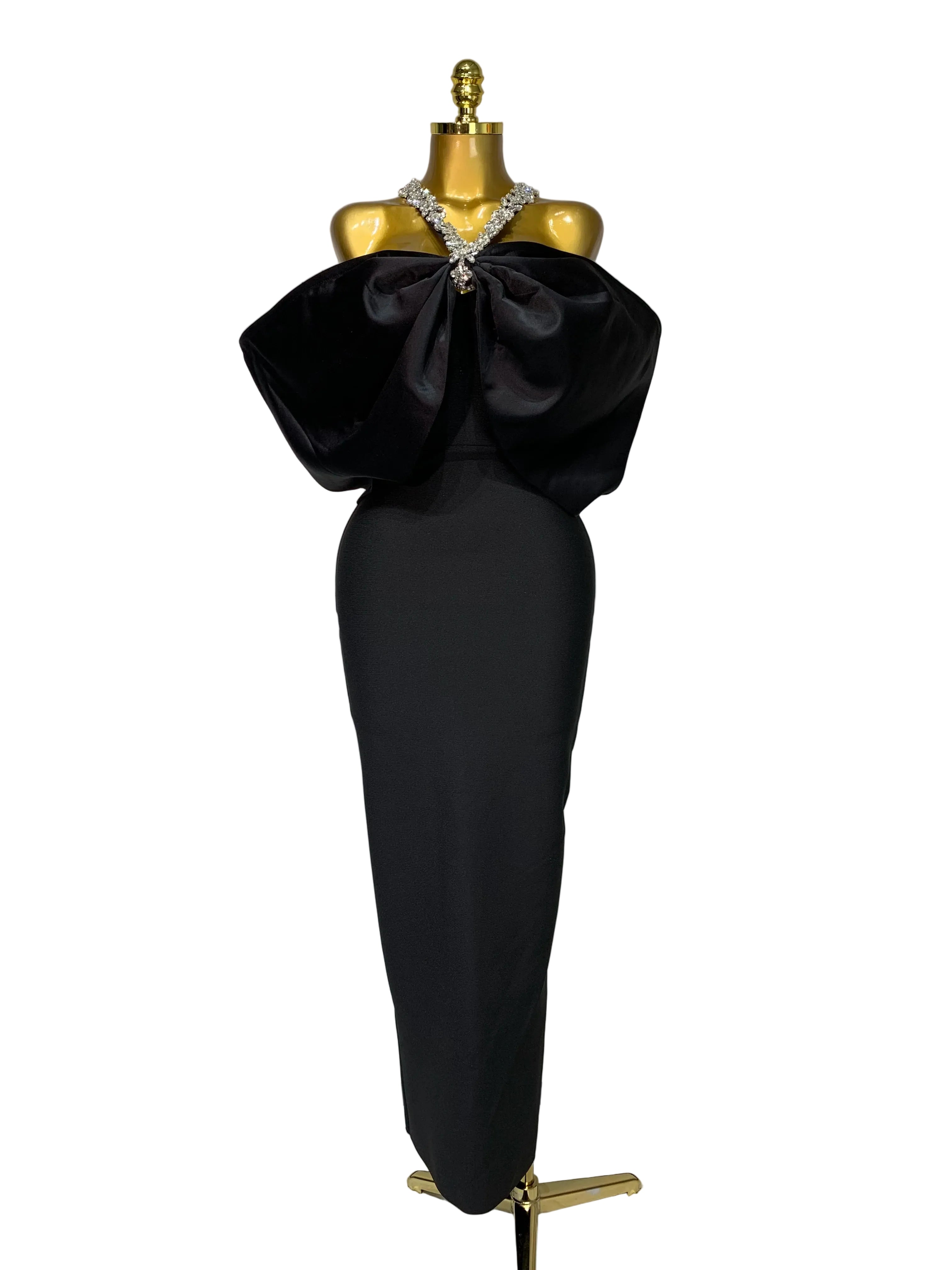 This halter off-shoulder bandage dress features a striking slash neckline, shimmering crystal diamond embellishments, and a sleek ankle-length bodycon silhouette designed to sculpt and highlight every curve. Crafted from a high-stretch polyester–elastane blend, the dress delivers both comfort and a flawless slim fit. Perfect for nightclubs, evening parties, birthdays, and luxury celebrations, this statement piece is made for women who love to shine.