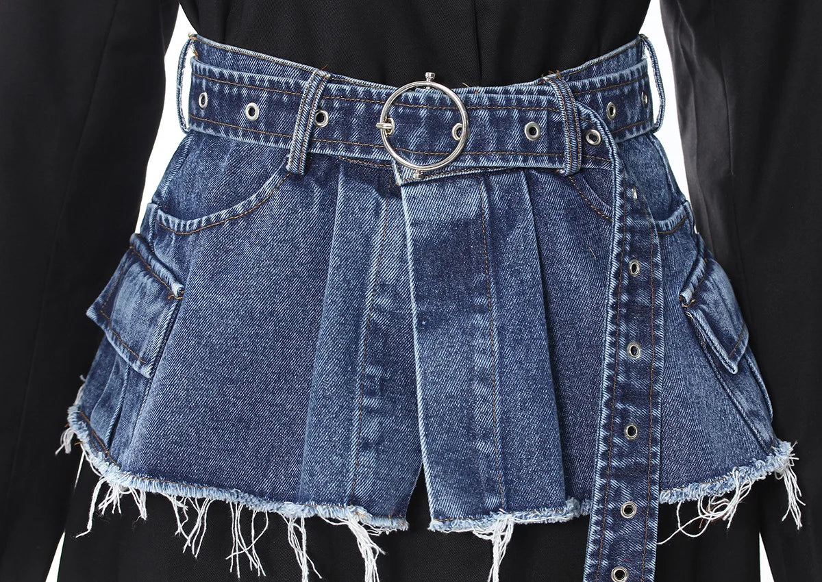 • Style: High-Street Blazer with Denim Waistband