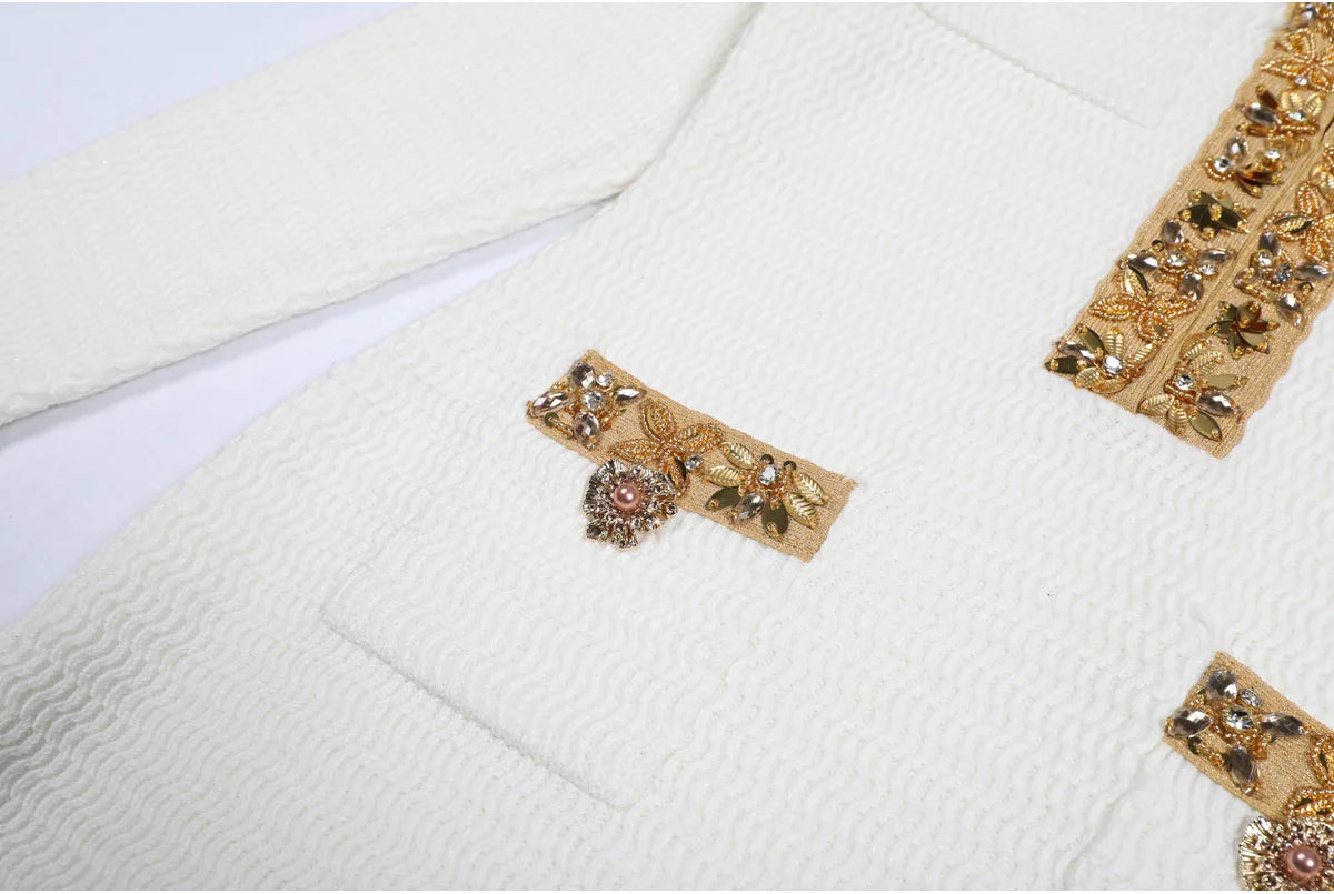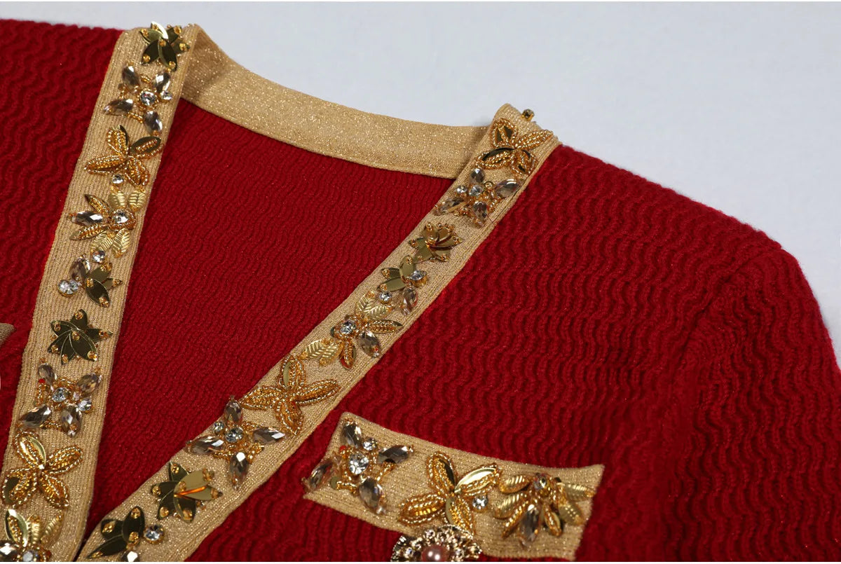 The Éclavine Dress captures the essence of refined glamour and modern femininity. Crafted from luxurious elastic knit fabric, this shimmering piece features delicate crystal accents that elevate its elegant silhouette. Designed with a flattering V-neckline and graceful puff sleeves, the dress embraces timeless sophistication with a touch of allure.