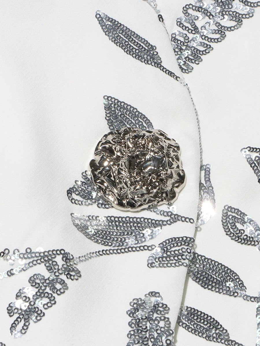 This stunning vest is crafted with a classic V-neckline and a clean, single-button closure. The true beauty of the Glimmara lies in its intricate sequin patchwork, which creates a dazzling, textured effect reminiscent of a treasured vintage find. It's a versatile layering piece that instantly elevates any look from simple to show-stopping.