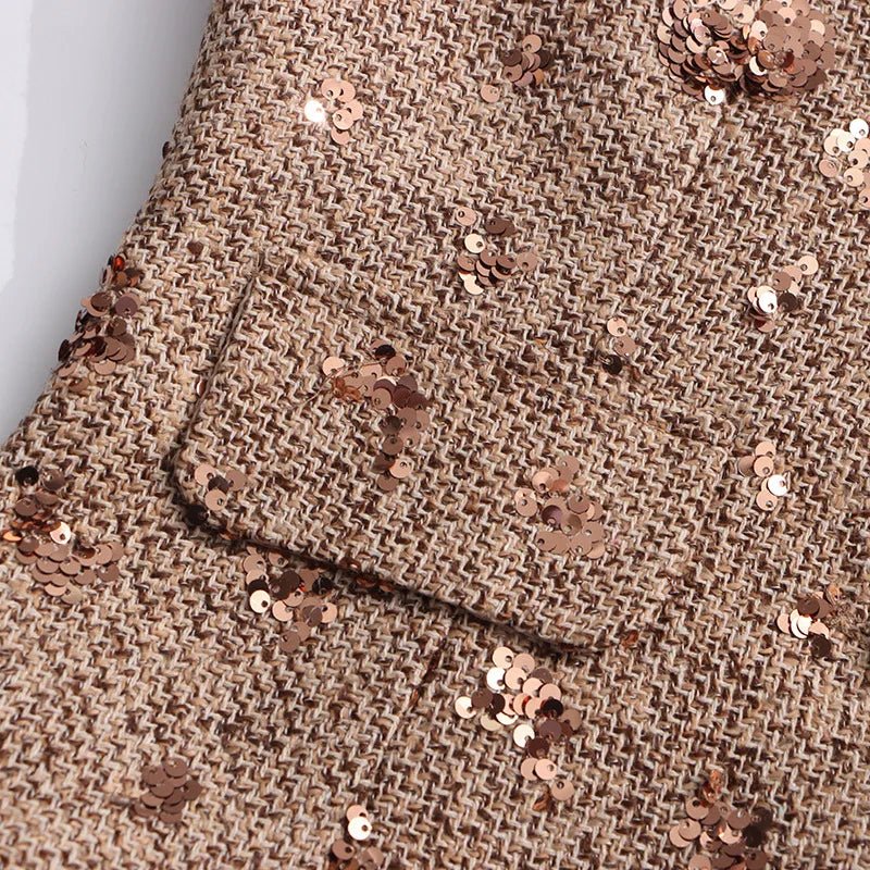 This beautiful two-piece set is infused with a captivating vintage spirit. The single-breasted vest features a classic V-neckline and a sharp, tailored fit. The coordinating A-line maxi skirt flows to the ankle, creating a graceful and elongated silhouette. The true magic lies in the delicate sequin embellishments that are artfully applied, adding a touch of subtle, shimmering light to the entire ensemble. The Marvia is your perfect outfit for a sun-drenched festival or an elegant garden party.