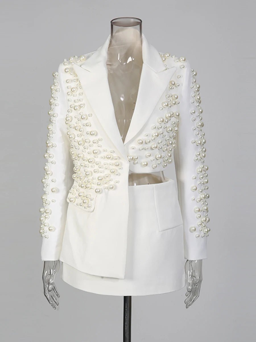 • Style: Pearl Lapel Jacket & Mini Skirt Two-Piece Set